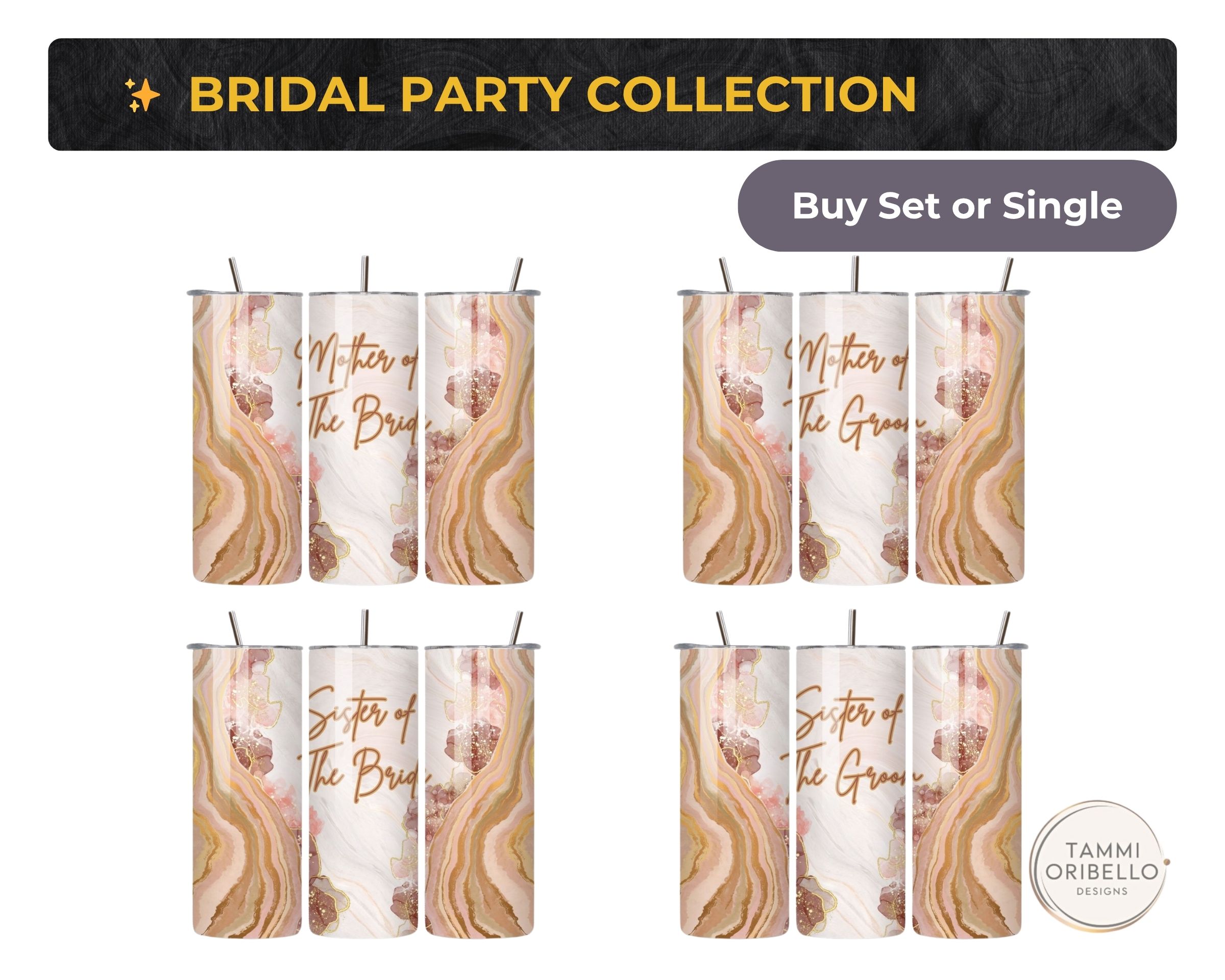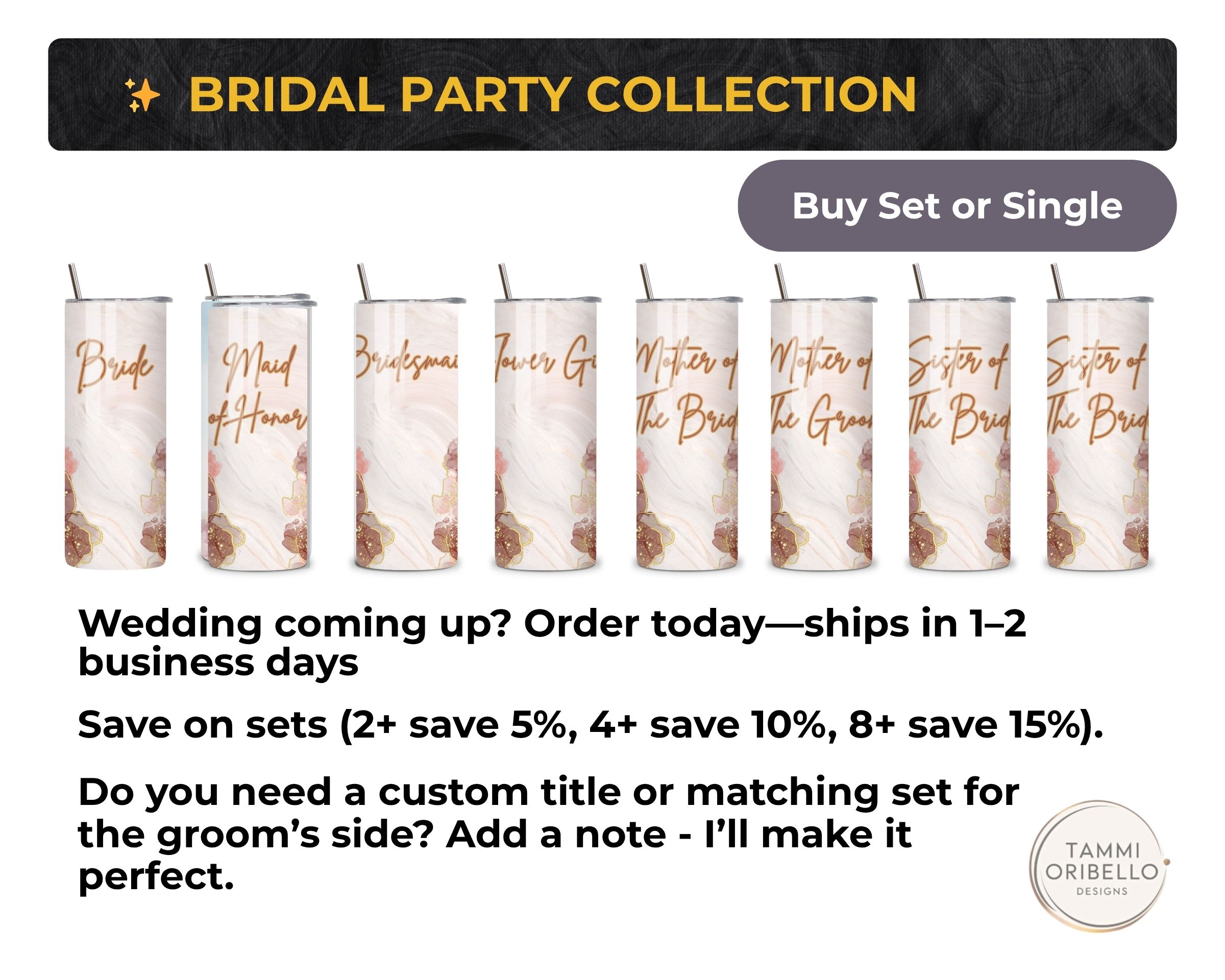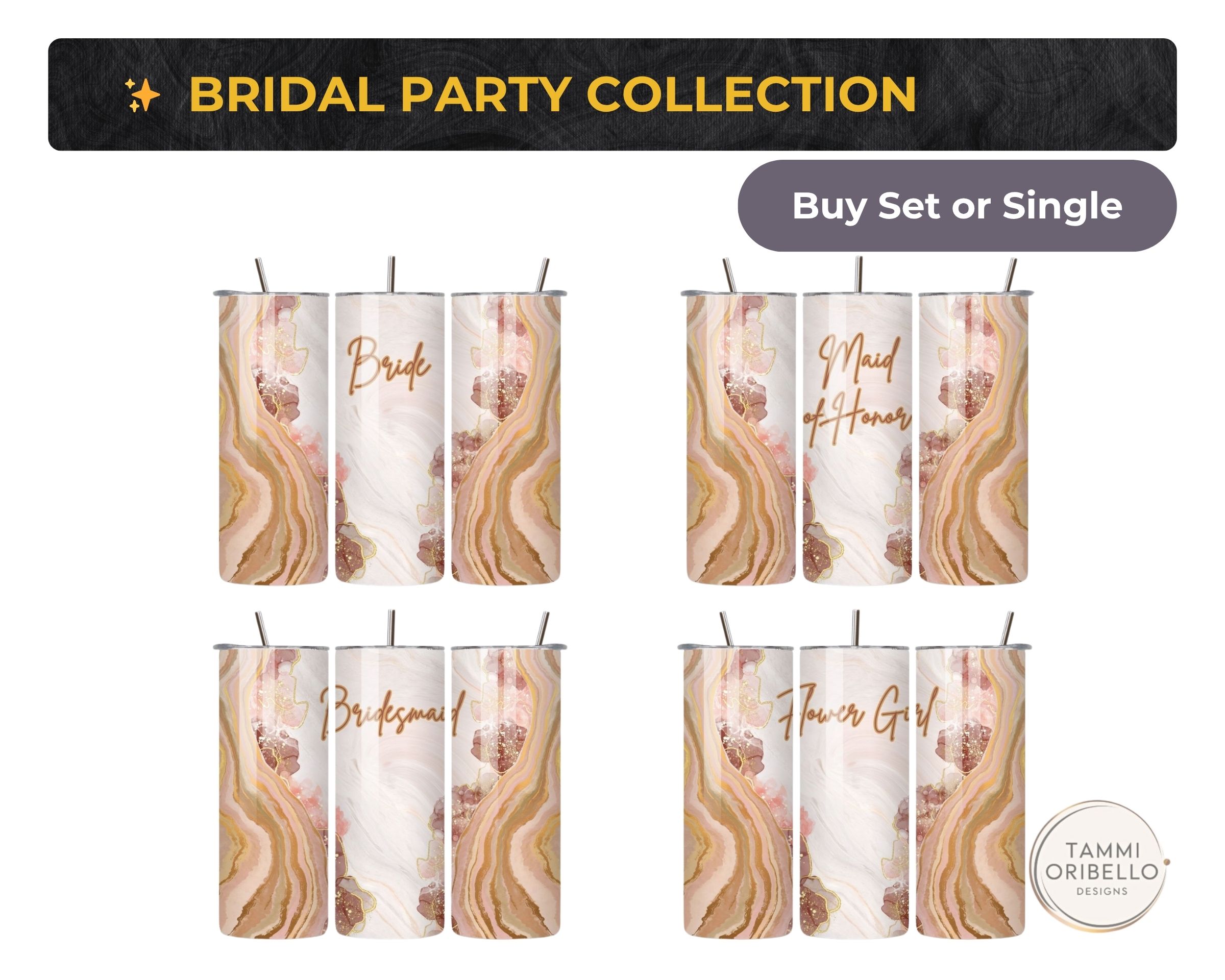 Explore the Bridal Party Collection and Couple Sets to add matching roles and gifts.