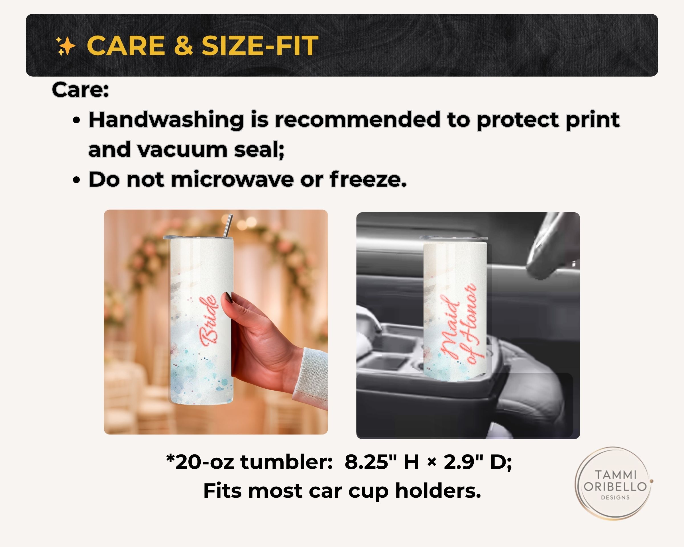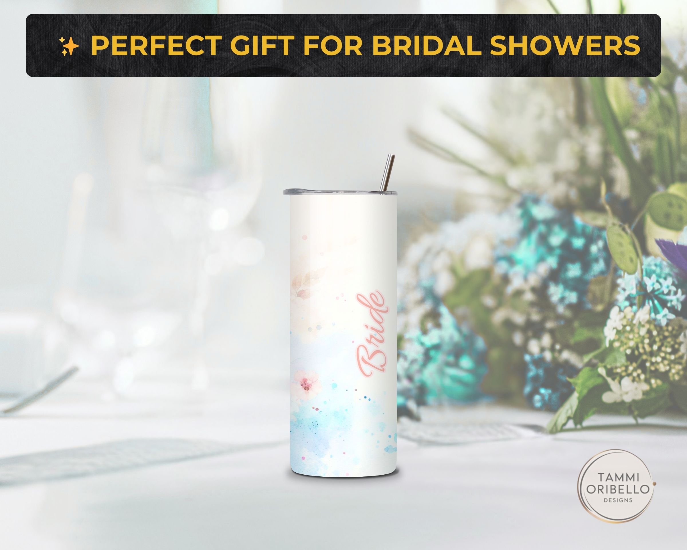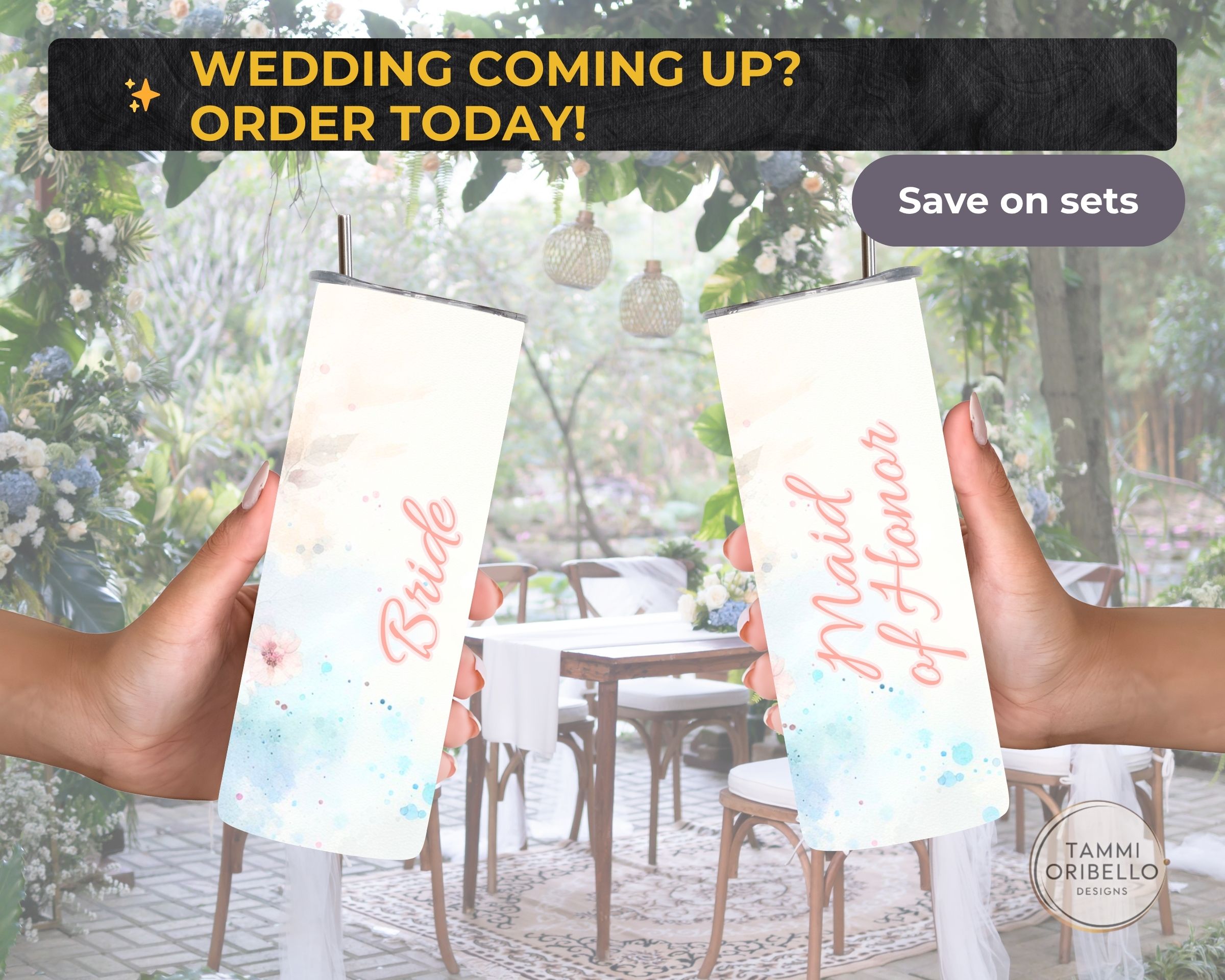 Soft pastel flower design on 20 oz stainless tumblers for the bridal party. Buy one or build a set. Optional names. Gift-ready. Ships in 1–2 days.