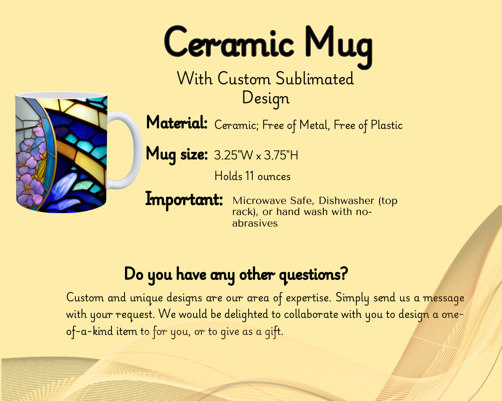 A Thoughtful Gift: Whether you're looking for a birthday, holiday, Christmas, Mother’s Day, or “just because” gift, this faux stained glass designed hummingbird mug is sure to bring a smile to any dragonfly and nature lover’s face.