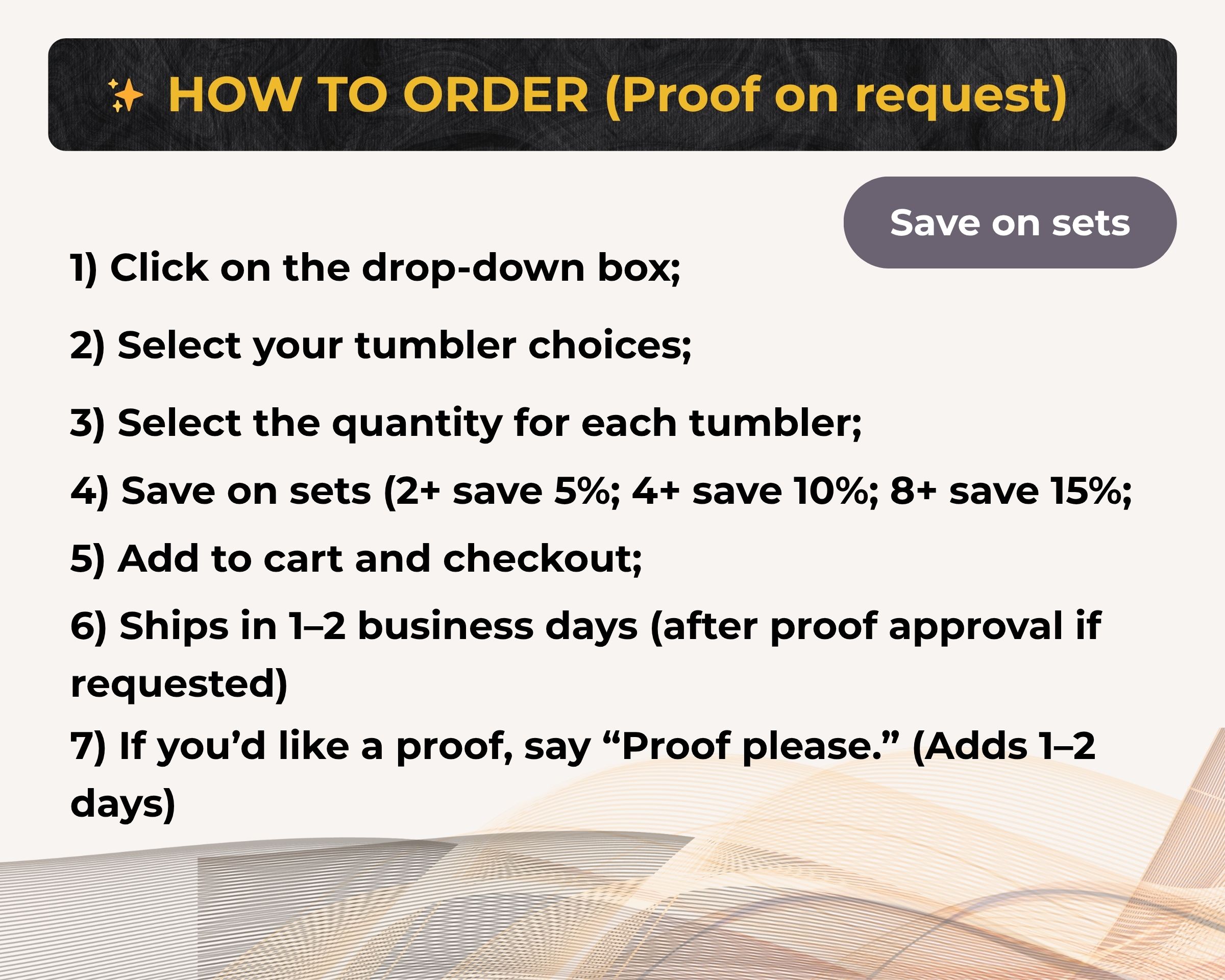 CUSTOM ORDERS/APPROVE YOUR DESIGN I will send you a preview in 1-3 days for your reference. Feel free to make changes at that time! If you do not reply within the next 48 hours, we will consider the design approved and proceed with production. When you approve the preview, we will continue with the design process.