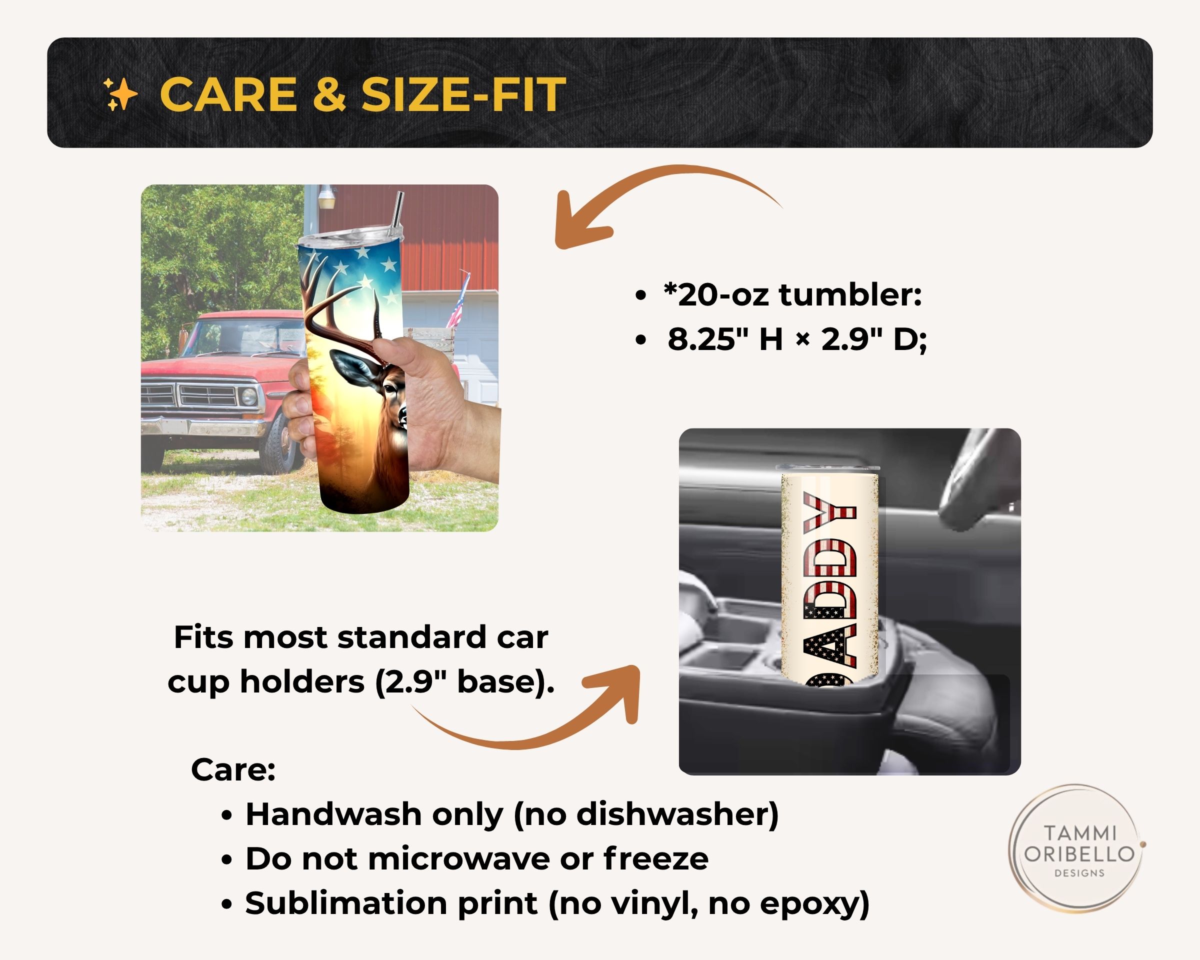 How it’s made: Professionally designed and permanently sublimated in Lapeer, Michigan, by Tammi Oribello Designs (design will not peal or crack).