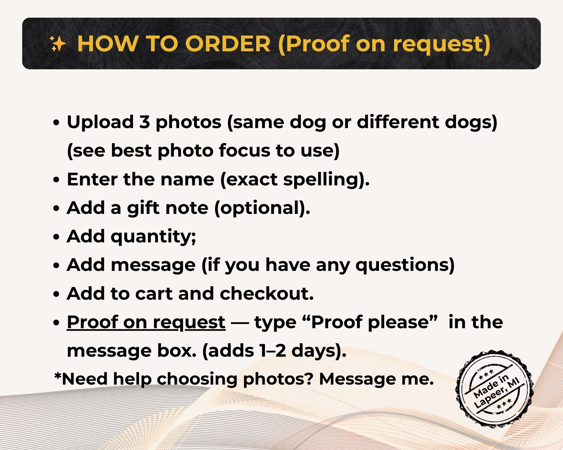 CUSTOM ORDERS / APPROVE YOUR DESIGN: I will send you a preview in 1-3 days for your reference. Feel free to make changes at that time! If you do not reply within the next 48 hours, we will consider the design approved and proceed with production. When you approve the preview, we will continue with the design process.
