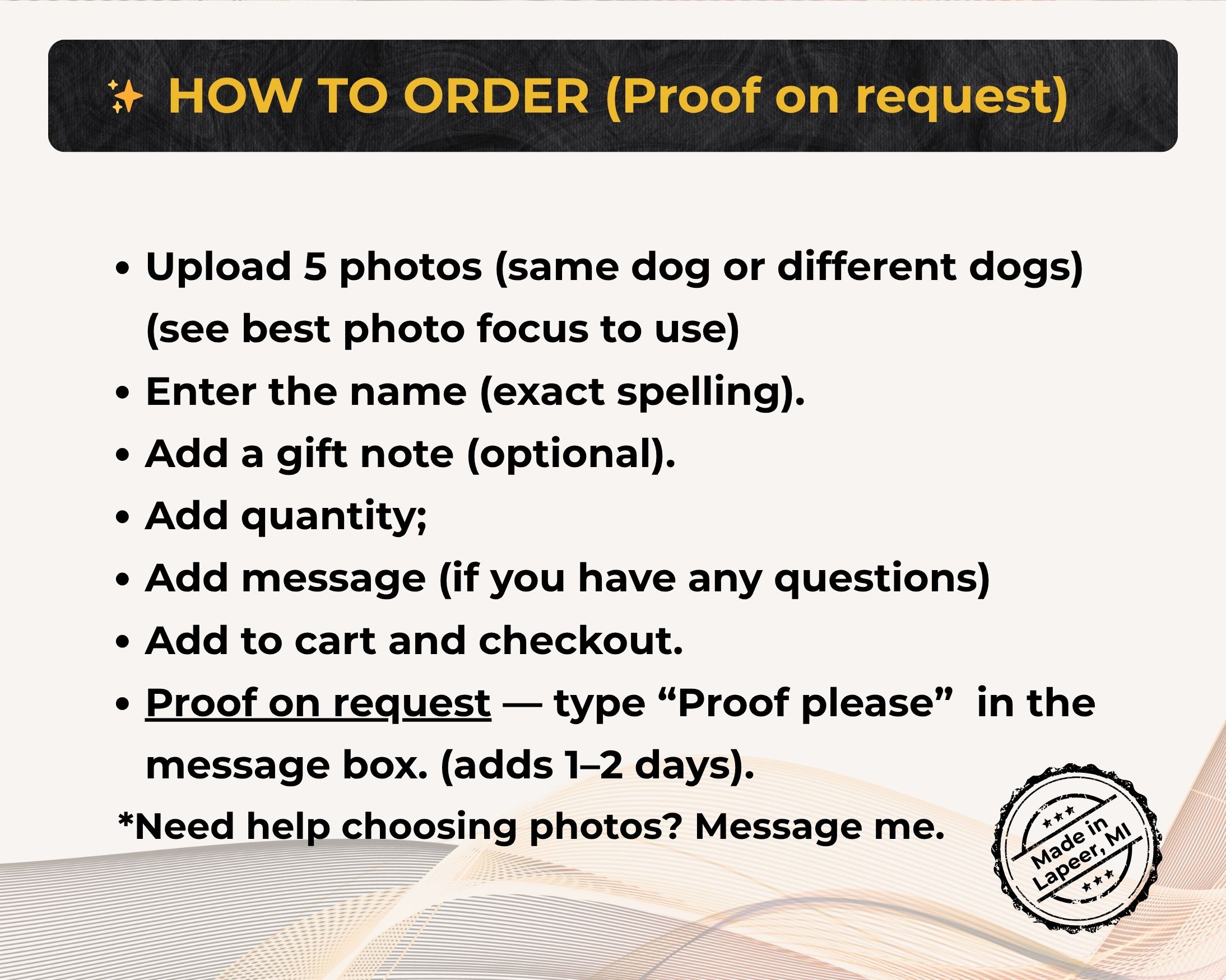 Need help choosing photos or the name style? Message me and I’ll guide you.