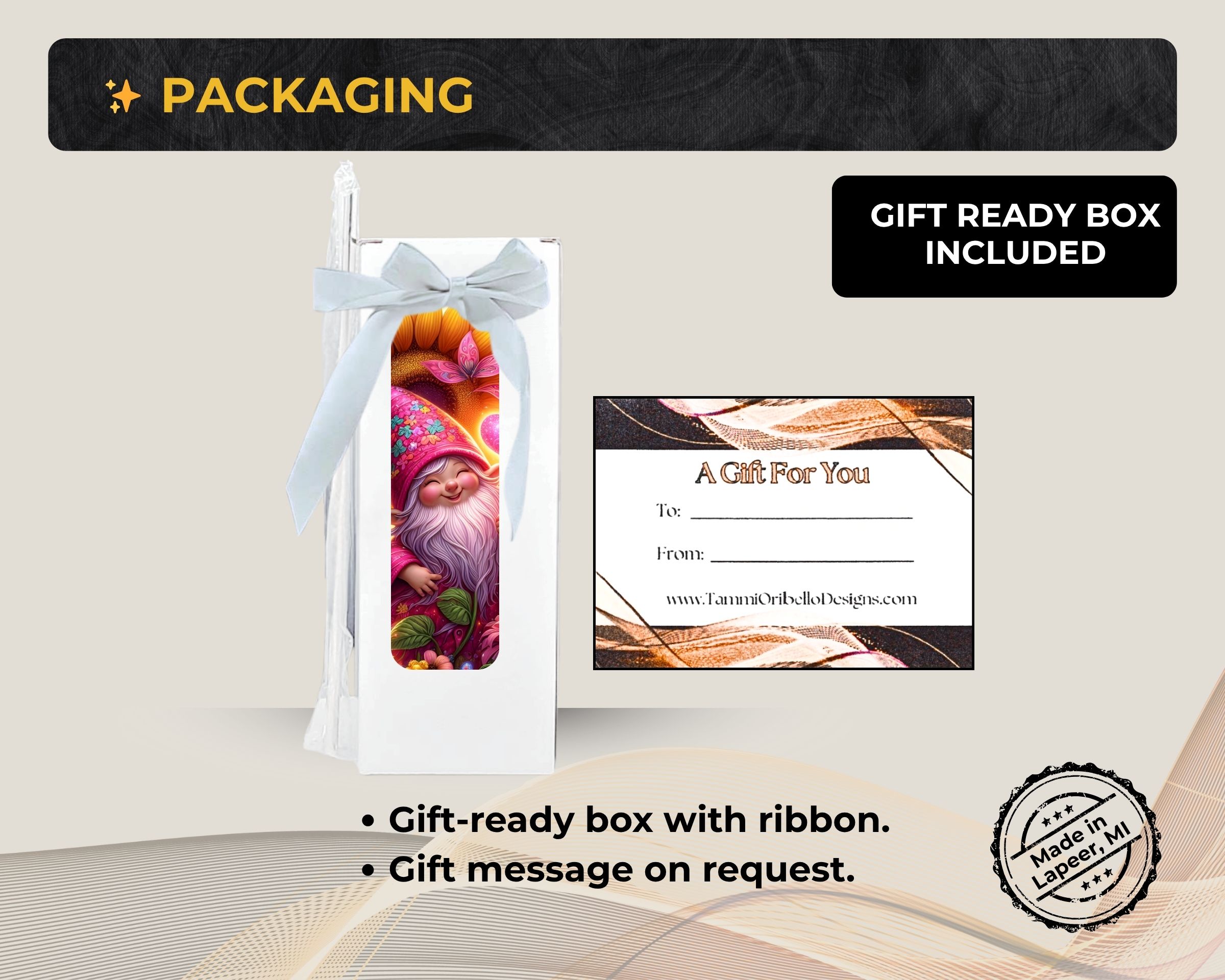 Every item is handmade and shipped from my studio in Lapeer, Michigan — often featuring custom art, your favorite colors, meaningful quotes, names, dates, or even photos.
