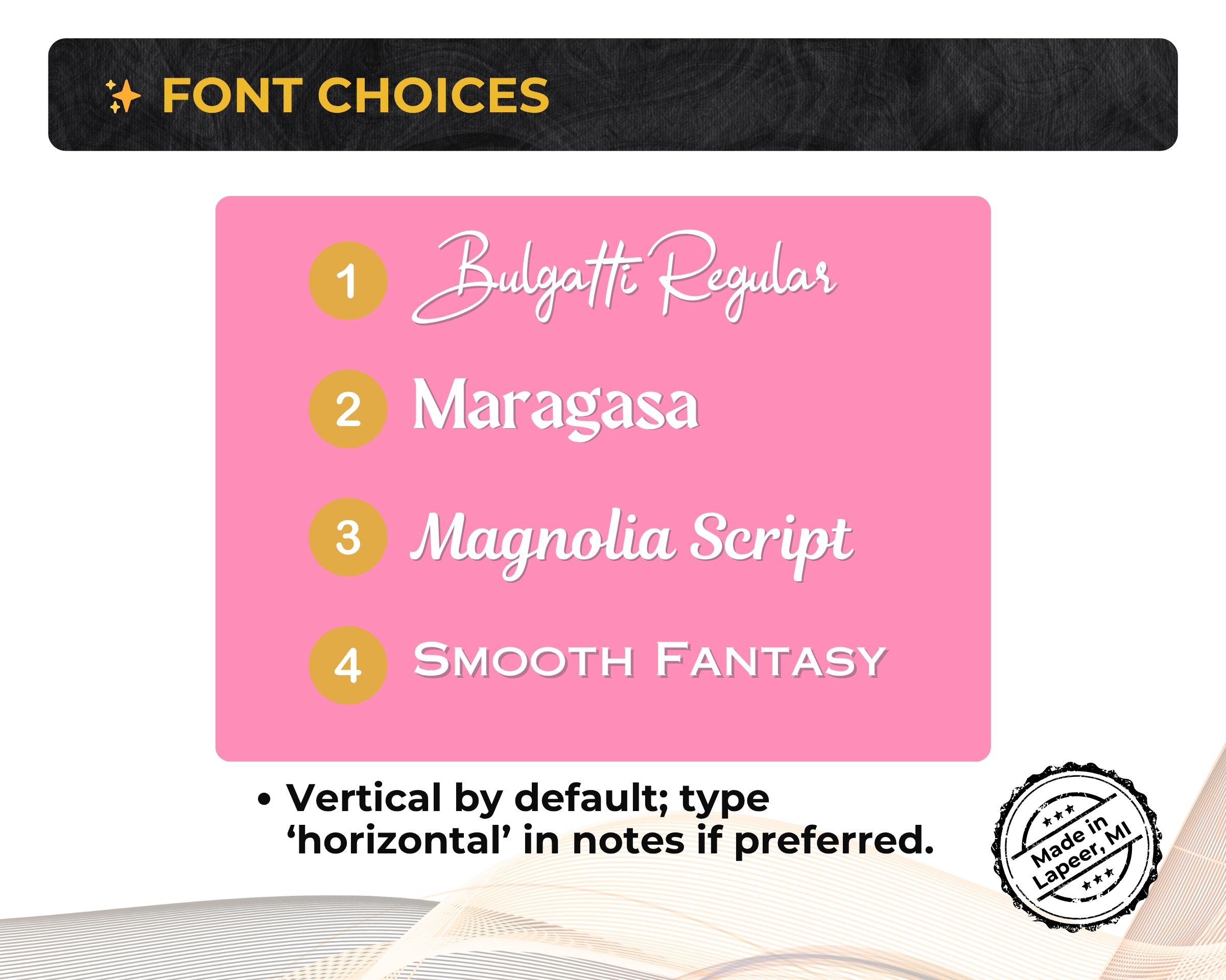 Ready to make it yours? Add the name and font, choose vertical or horizontal, and add to cart—I’ll craft and ship it from Michigan with care. ?