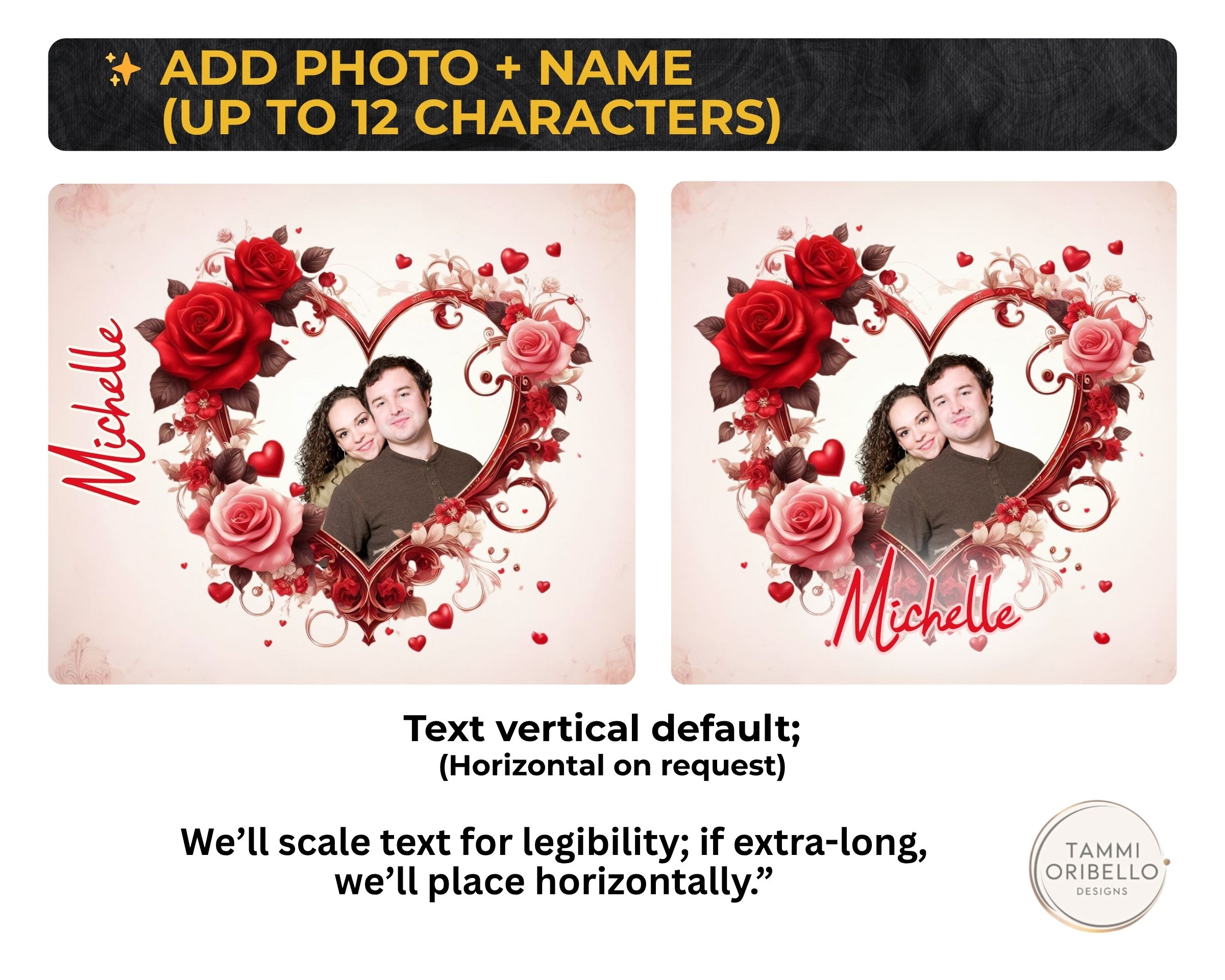 Meet the sweetest keepsake for your favorite person. I’ll place your photo inside a romantic red-rose heart and add a name on the side—simple, beautiful, and made just for you in Lapeer, Michigan.