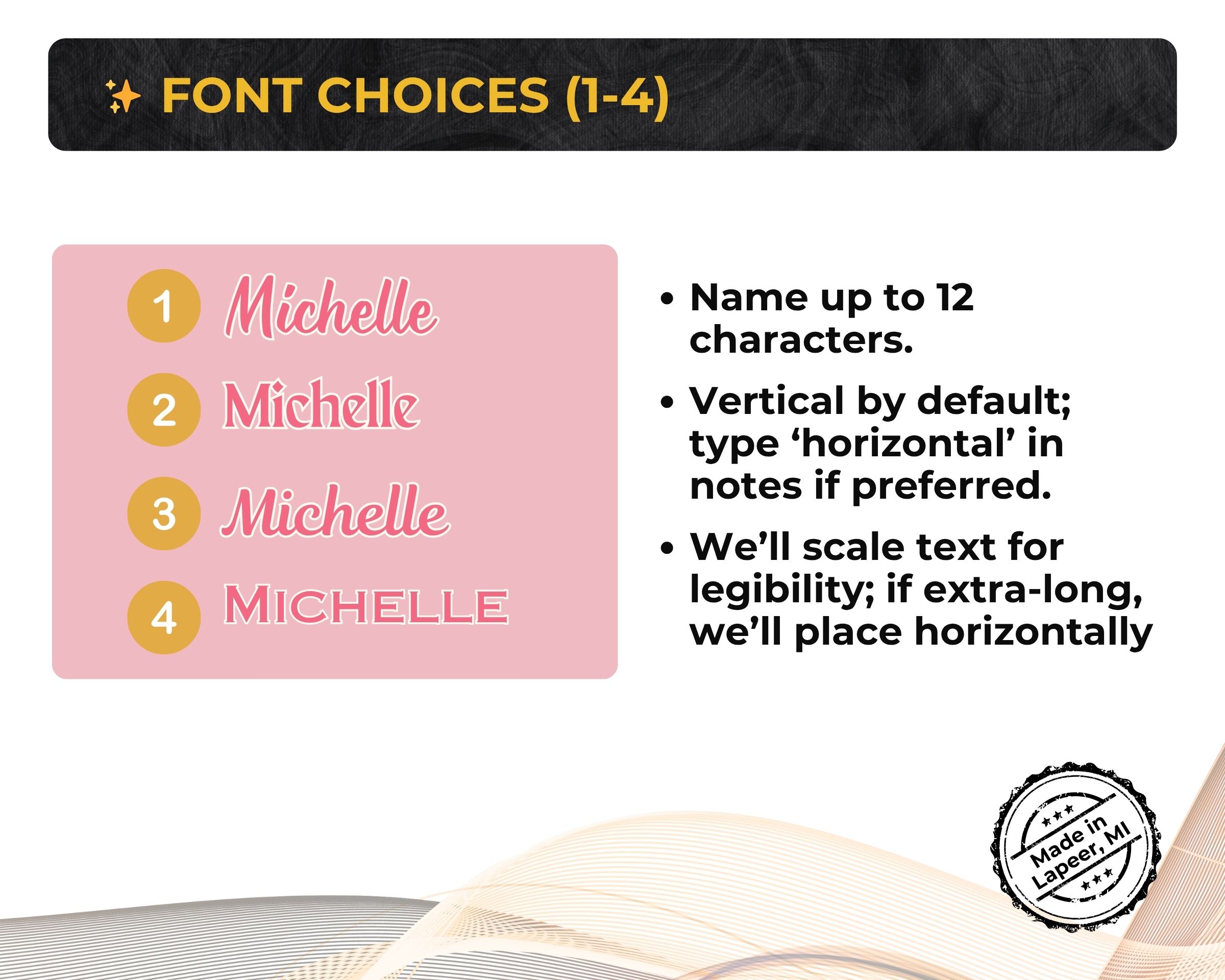 Can I add two names? Yes—use “Name: Anna & Jake.” I’ll place horizontally if needed.