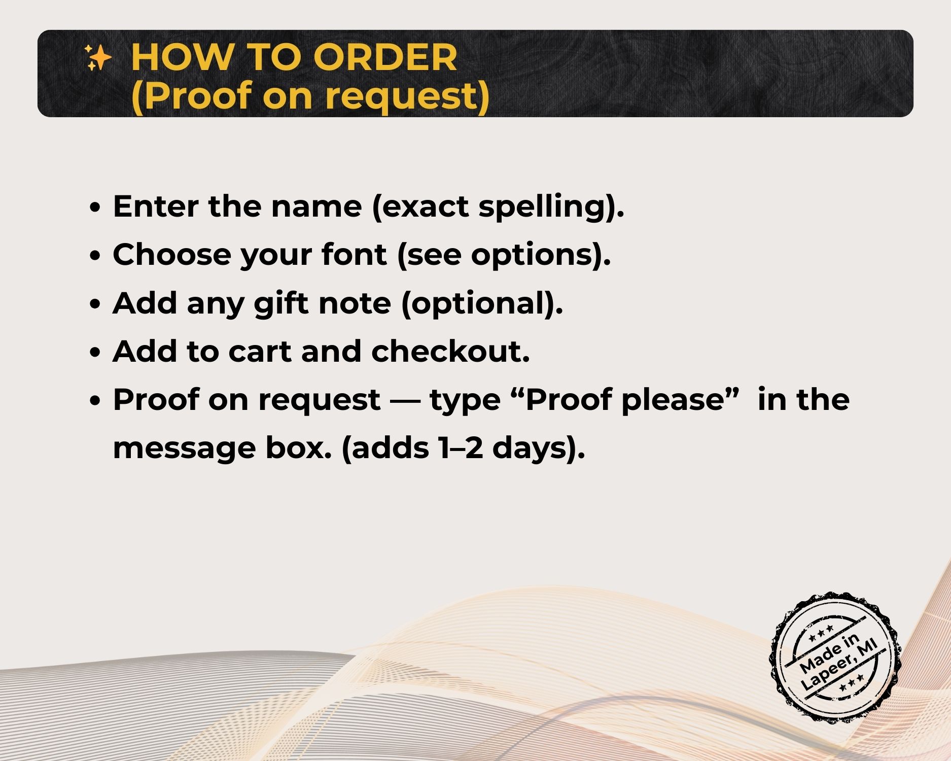 Proof available on request before printing; 1 free edit within 24 hours is included.