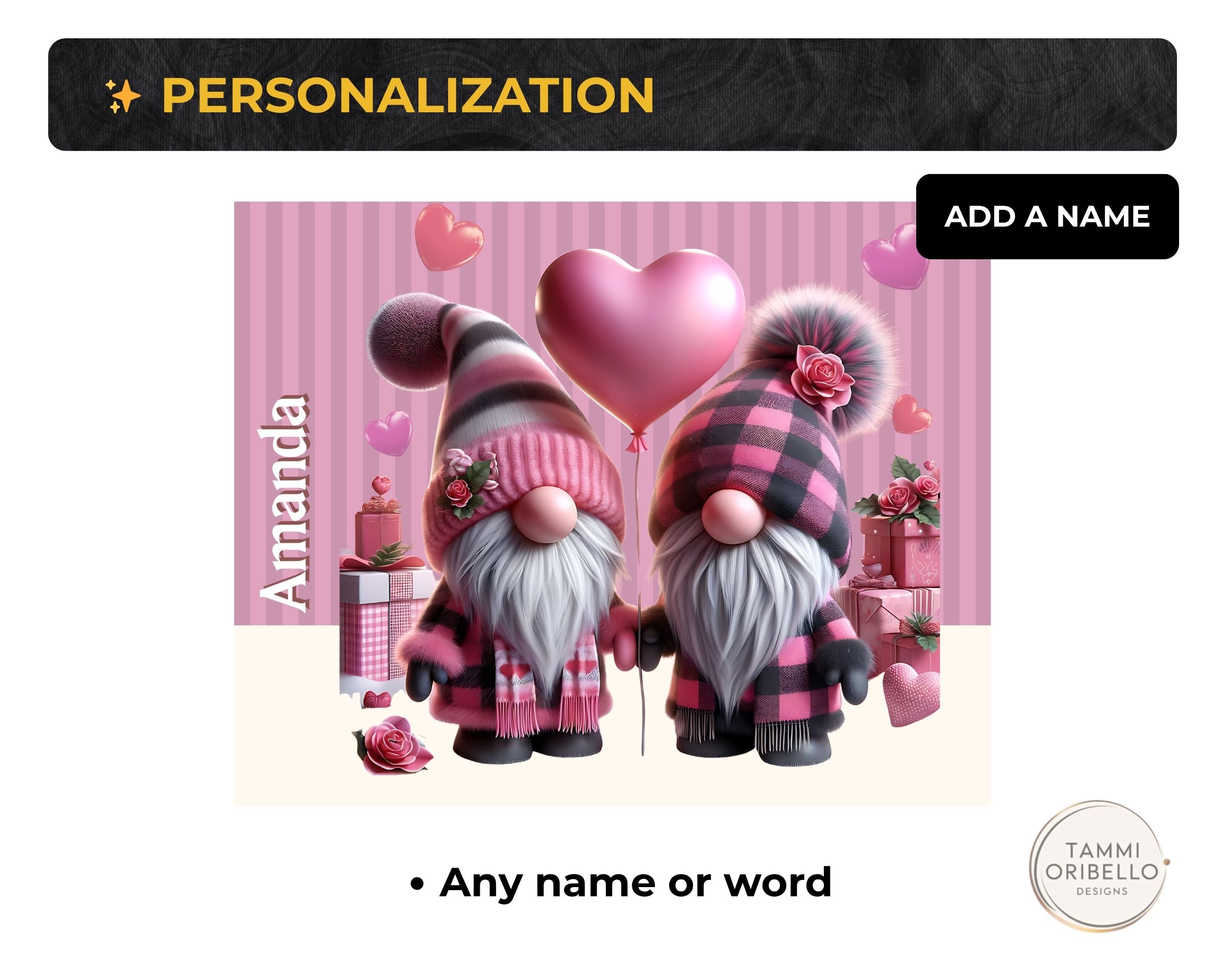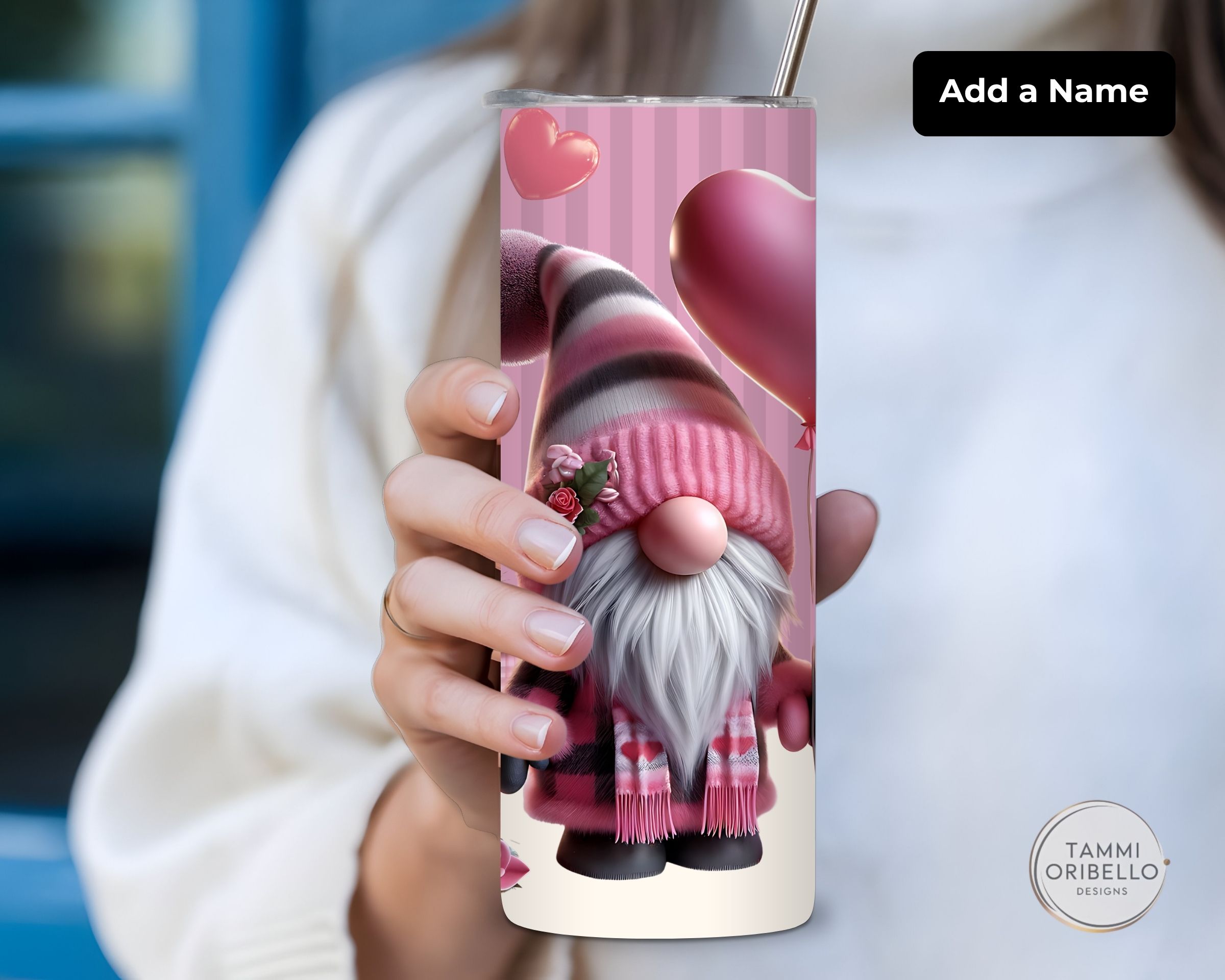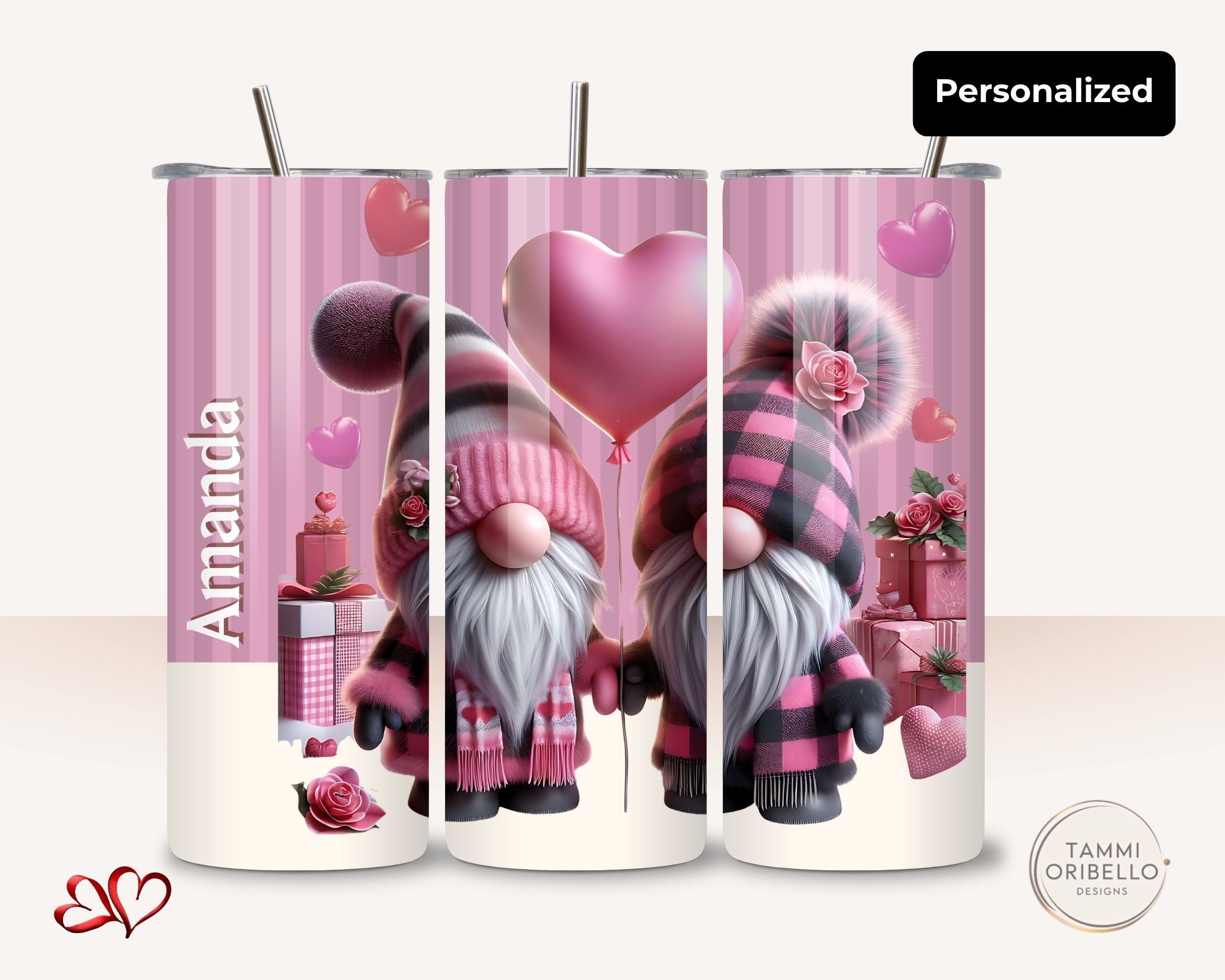 Personalized Pink Gnome Couple 20 oz Tumbler with Name – Valentine’s Day Gift