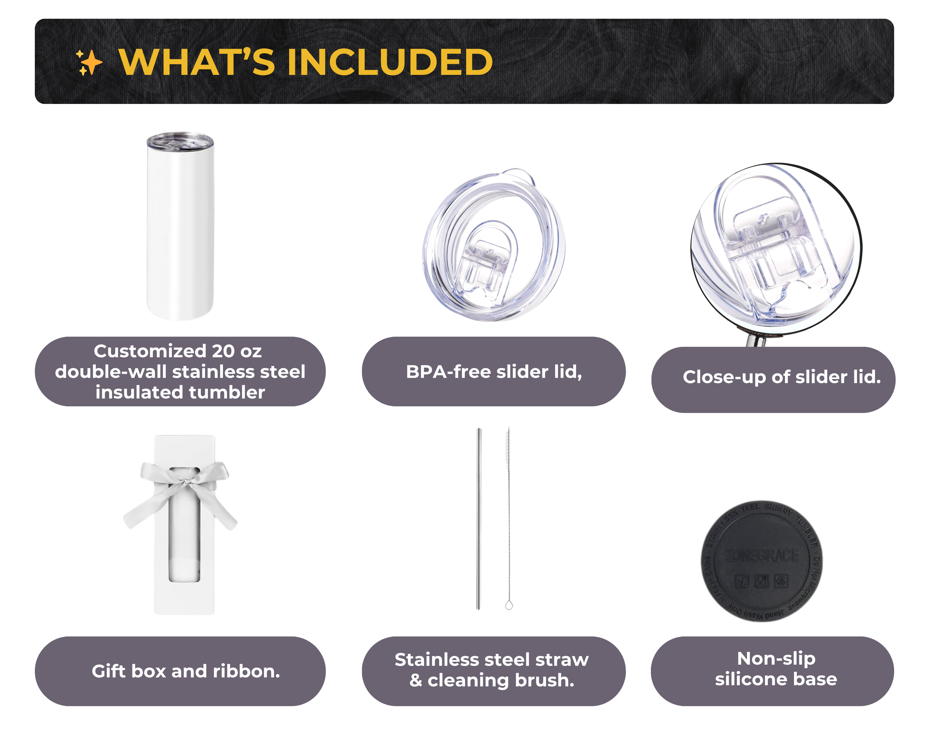 How it’s made: Sublimation permanently infuses the artwork—no vinyl, no epoxy, no real glitter—for a smooth, long-lasting finish.