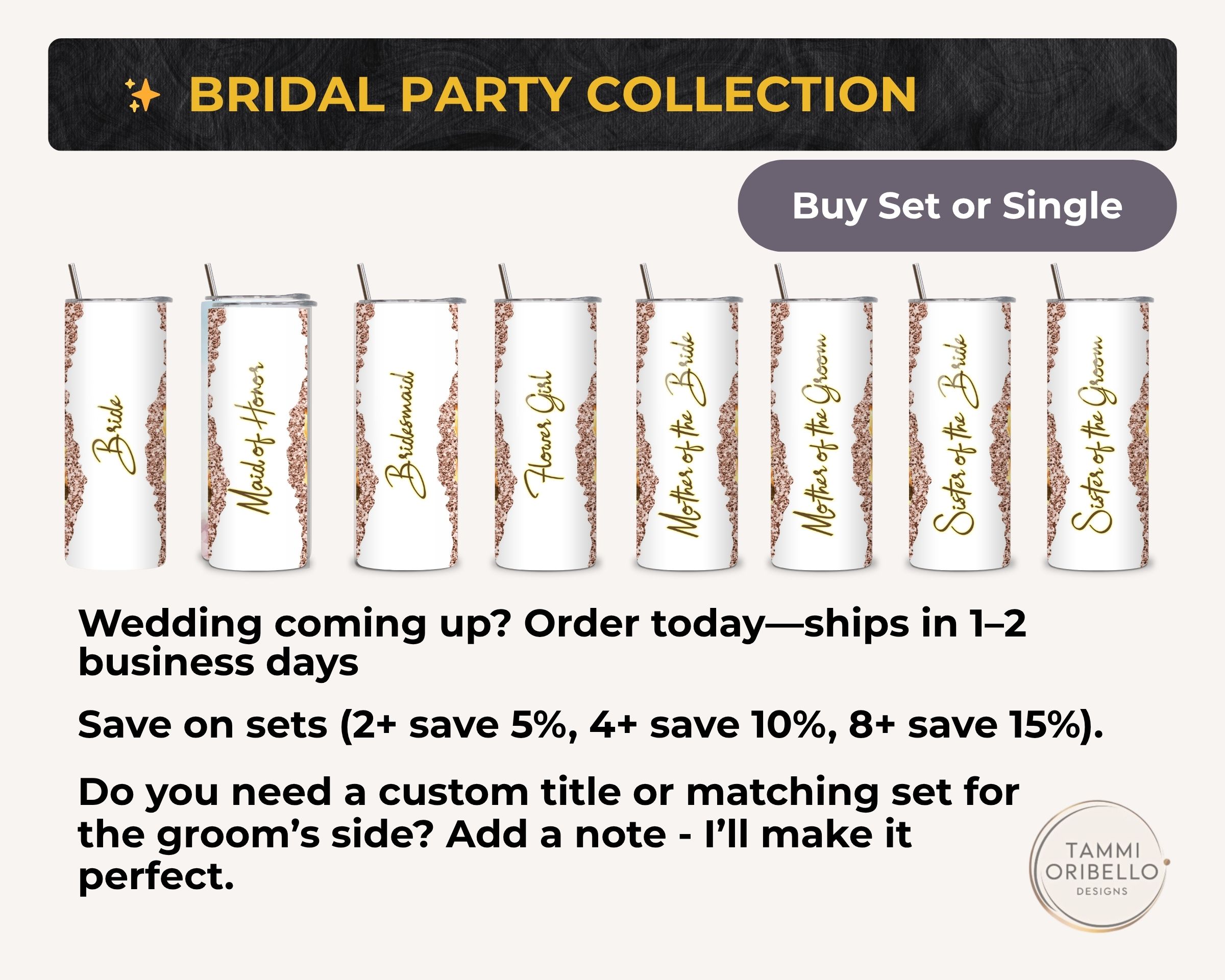 Order today so your bridal party gifts arrive on time—sets make gifting easy and picture-perfect.